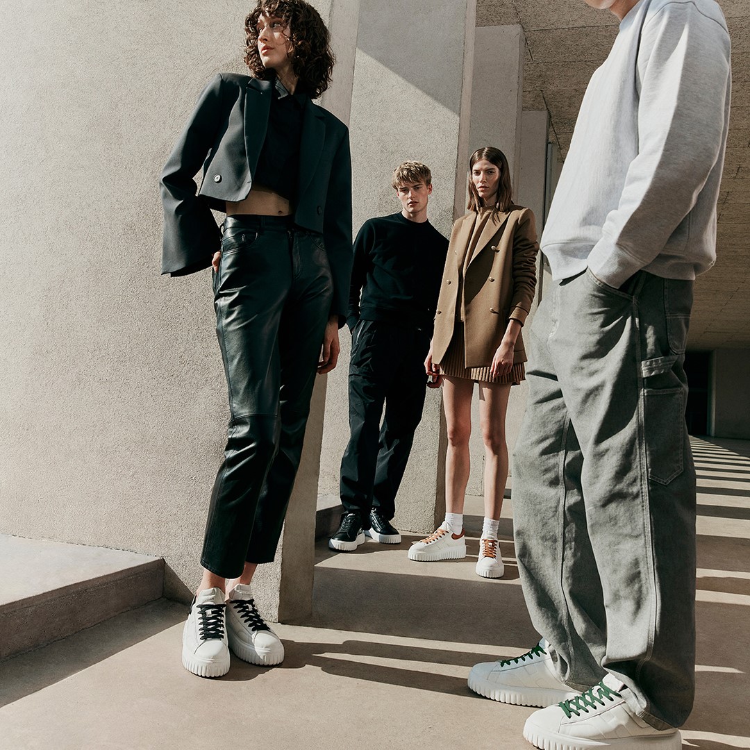 現代美學風格簡約清新、中性輕巧。垂直凹槽厚底設計比例更好。日到夜,正裝到休閒都能完美搭配。HOGAN一直以來超熱賣的款式,媒體搶報,絕對是這季最火紅的小白鞋之一!