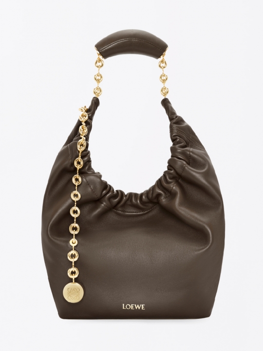 選用細緻柔嫩的nappa羊皮為底,串上特殊結構手把,袋口優雅抓皺設計形成亮眼視覺效果,再使用標誌性可調整的甜甜圈鍊帶精巧點綴上可拆式Anagram鐫刻金球,搭配品牌燙金logo標誌!細節入微至極全都再再體現LOEWE悠久工藝的超群。組合起來就是迷人的靈巧氣韻。