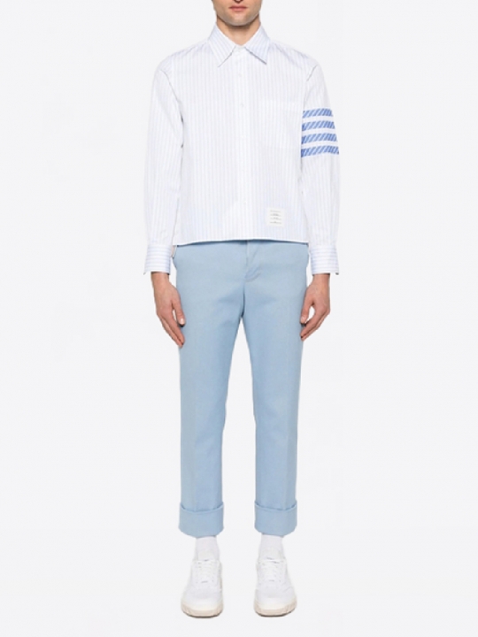 淺藍色條紋長袖襯衫(男)