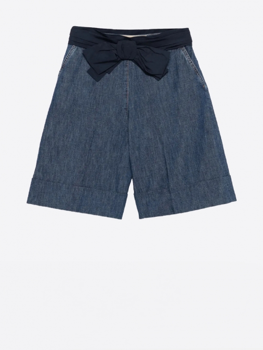 靛藍色蝴蝶結牛仔短褲