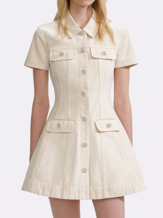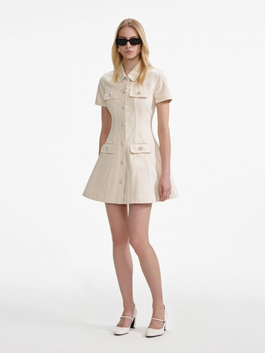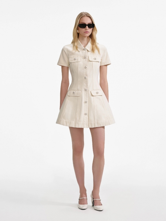 奶白色牛仔迷你連身裙