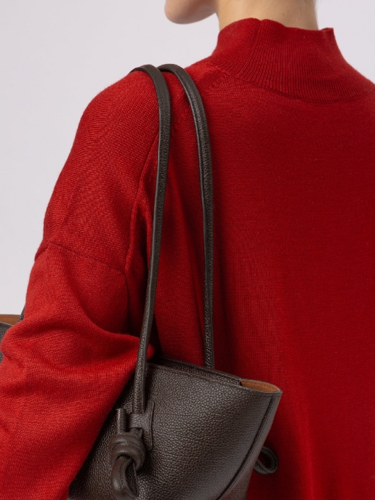 這款單肩背包採用打結手柄設計,由拋光義大利小牛皮製成,內襯小牛絨面革。 由西班牙技藝精湛的工匠手工製作,展現卓越工藝。