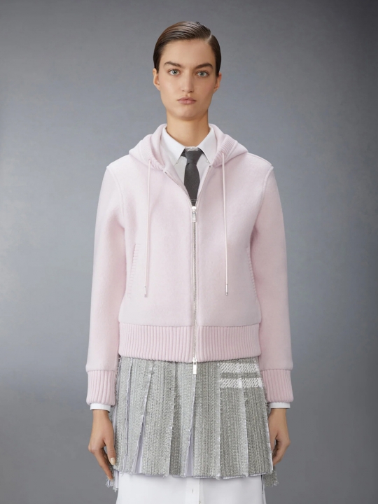 淺粉紅拉鍊連帽外套