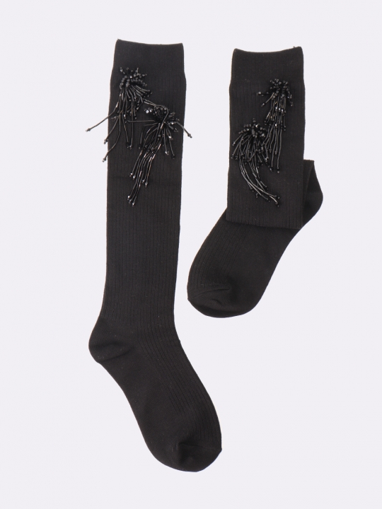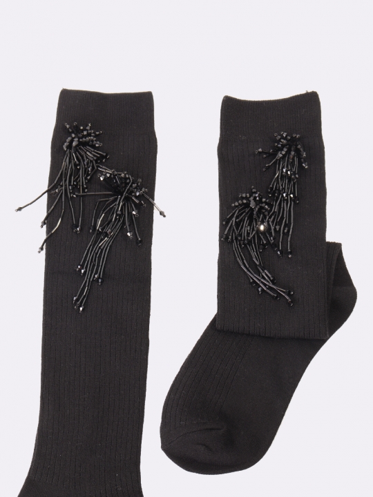 黑色銀蔥蝴蝶結長襪