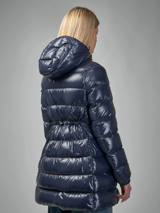海軍藍連帽中長款羽絨衣