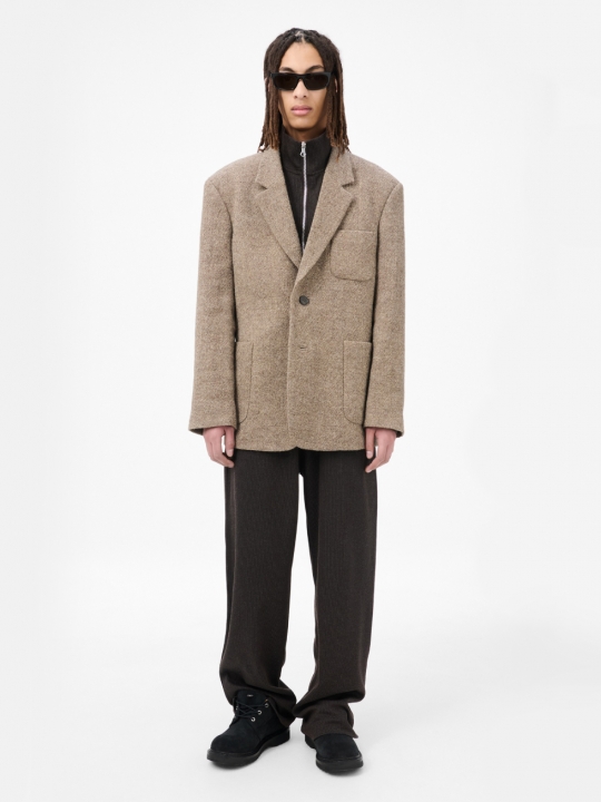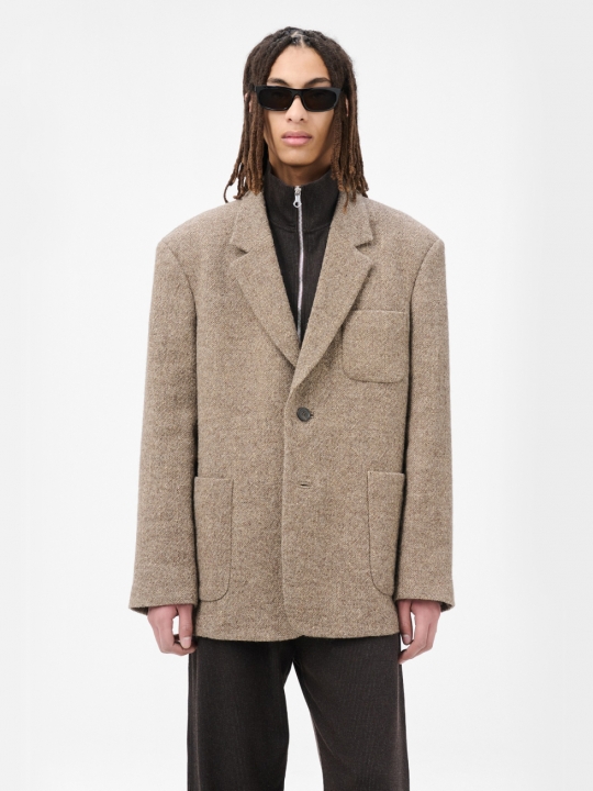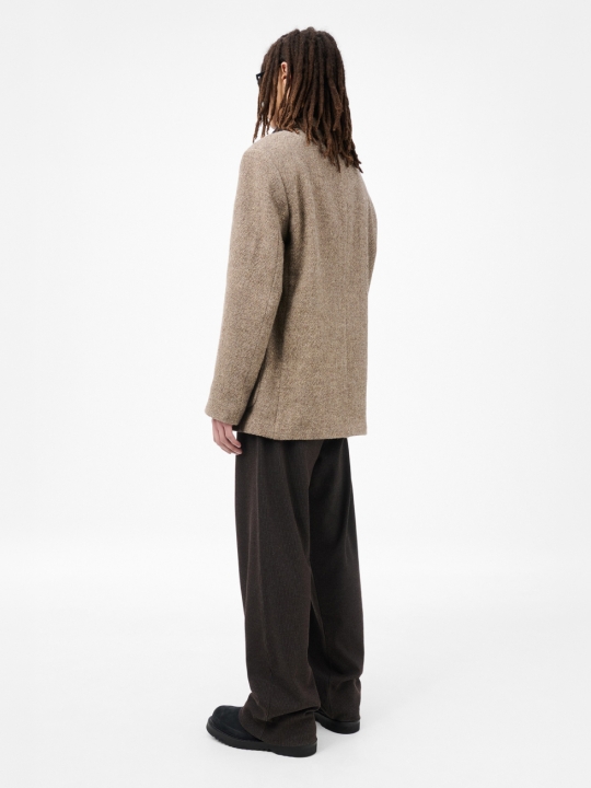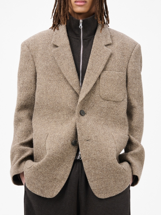 Embrace 男士西裝外套採用天然棕色麻布布料製成。這款男士 Embrace 西裝外套採用義大利布料,由初剪羊毛和麻混紡而成,版型寬鬆,配有缺角翻領、斜角胸袋、牛角雙扣門襟、貼袋和半襯裡。 這款服裝採用質地柔軟、版型寬鬆的布料製成。請小心輕放,並按照洗滌說明進行清洗。尤其要注意避免配戴首飾或其他尖銳物品,以免刮傷布料。