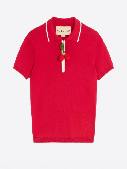 紅色櫻桃polo領上衣