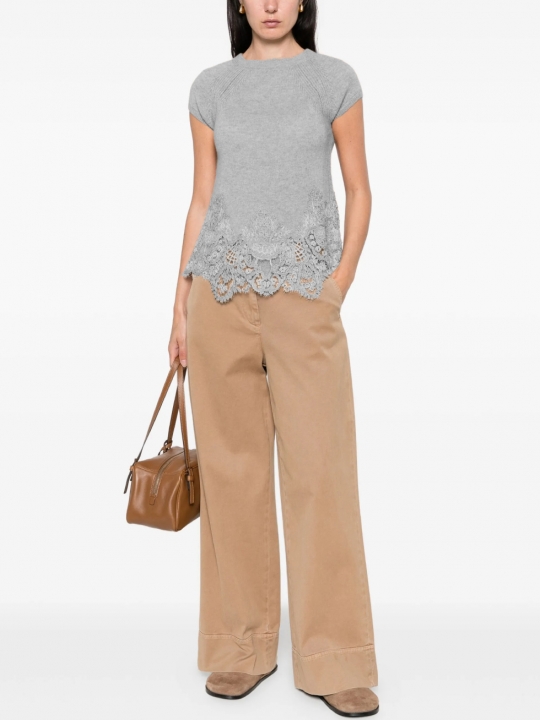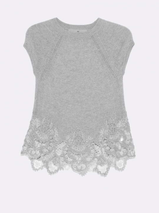 灰色蕾絲邊飾毛衣