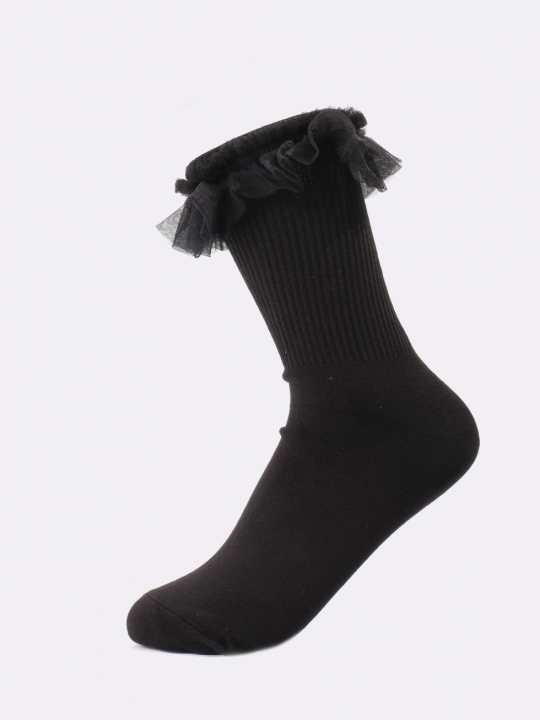 黑色蝴蝶結蕾絲短襪