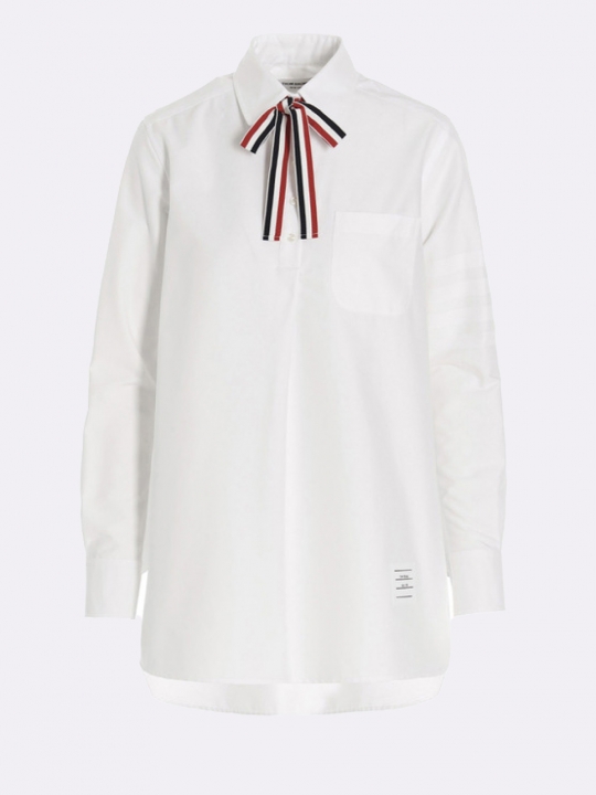 白色條紋領結長袖上衣