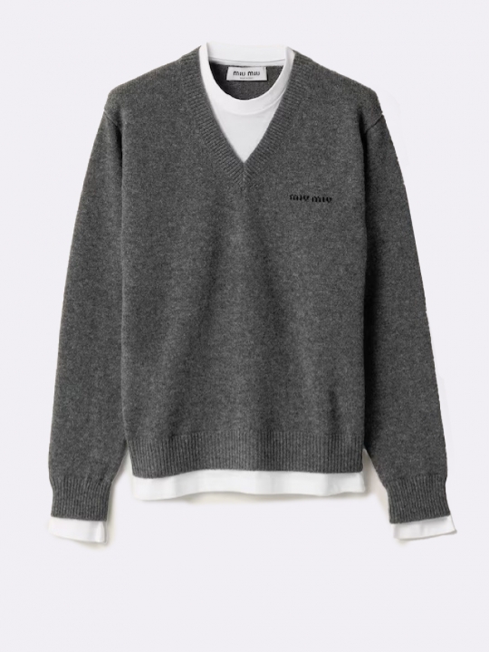 灰色羊絨V領毛衣