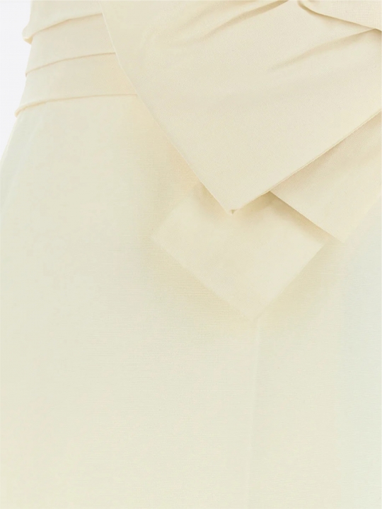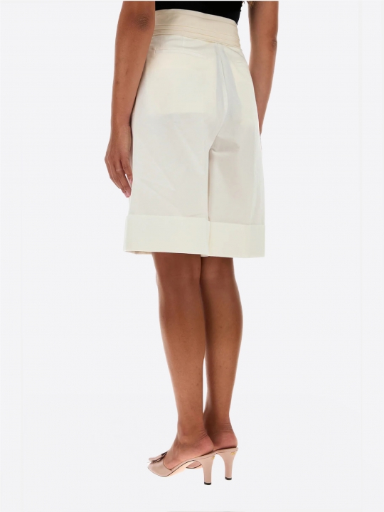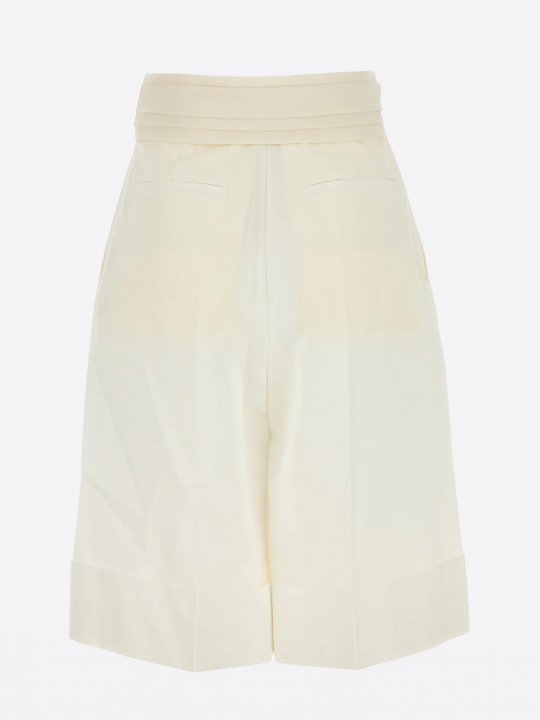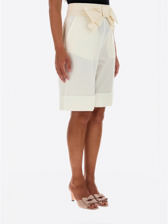 百慕達短褲,採用棉麻混紡布料,正面飾有裝飾蝴蝶結。 模特兒身高170厘米,穿著40碼