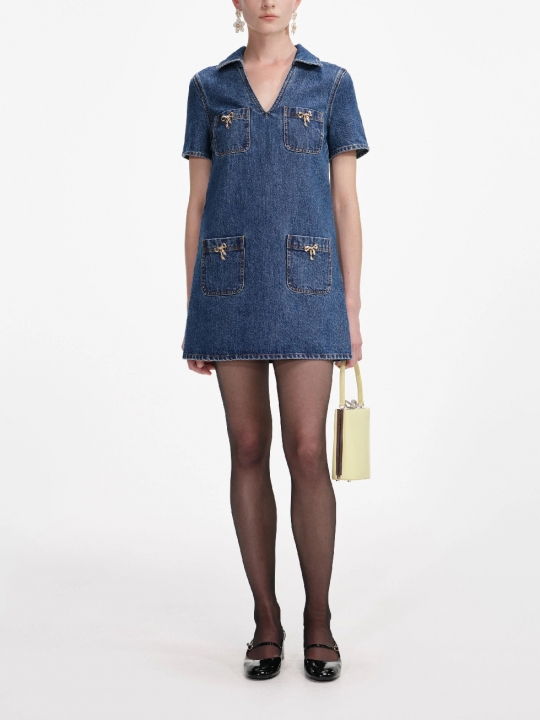 午夜藍牛仔迷你連身裙