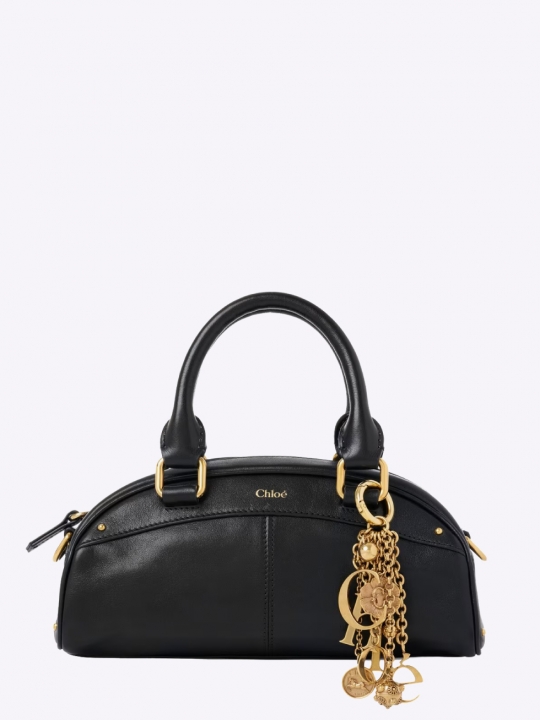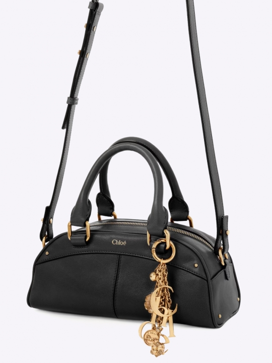 可拆卸的金色鑰匙圈飾有垂墜吊墜和 Chloé 字母,致敬品牌經典傳承。 可手提,也可使用可調節的皮革肩帶斜背。