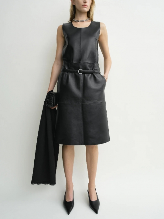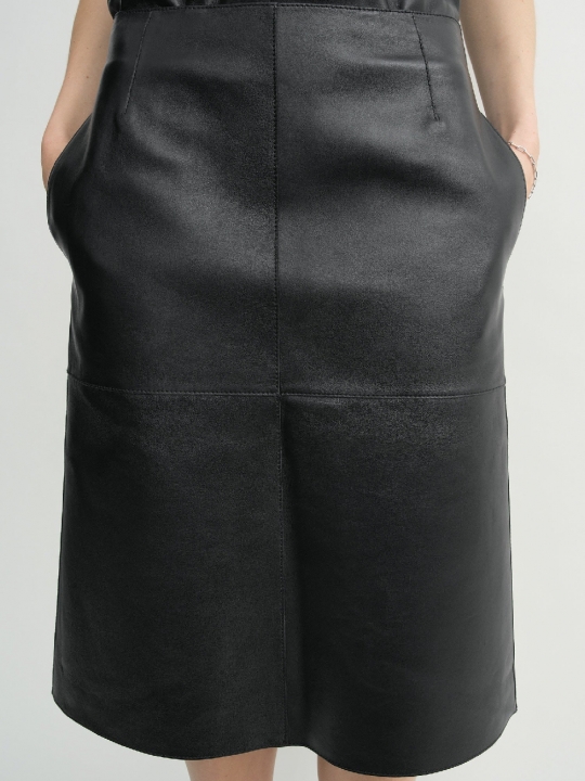 及膝A字廓形,精湛的拼接工藝,裙擺自然垂落,更添靈動之感。建議將裙子穿在臀部,這樣更顯摩登優雅。