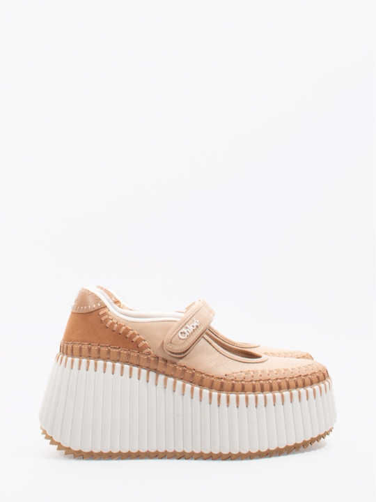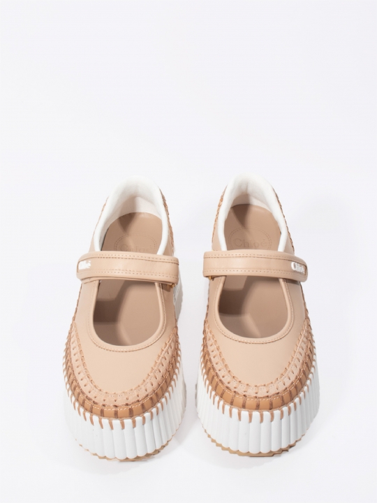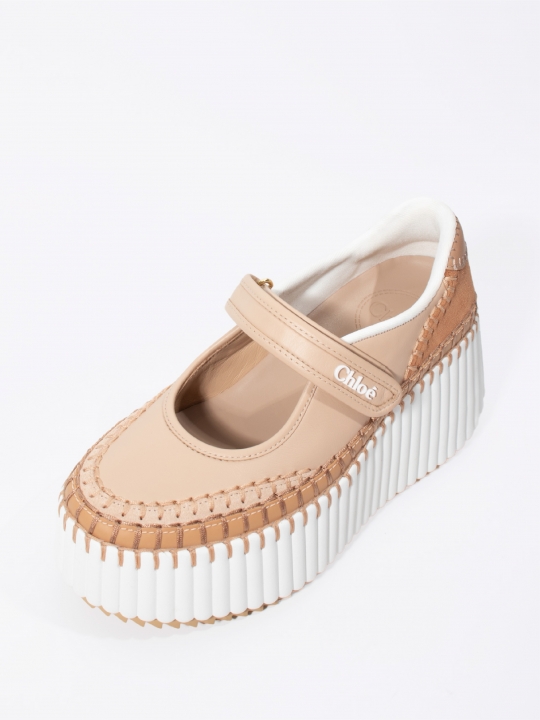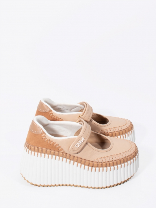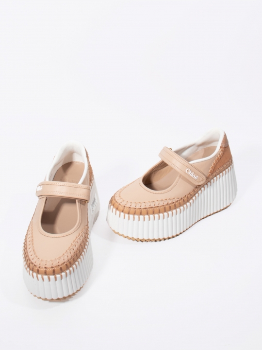 裸粉色NAMA坡跟運動鞋