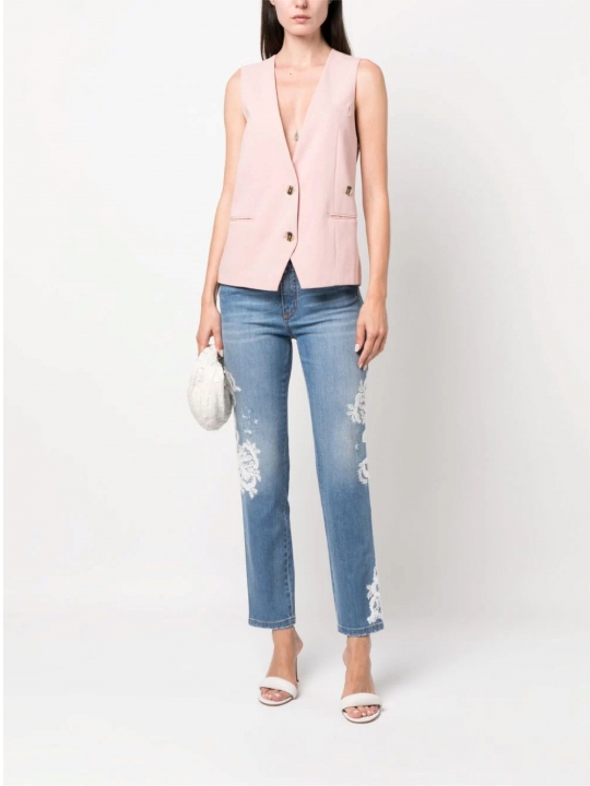 淺藍色花卉刺繡牛仔褲