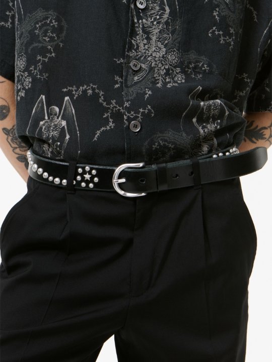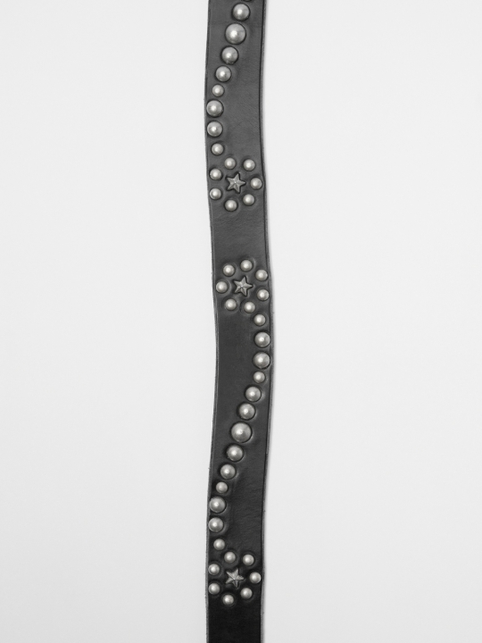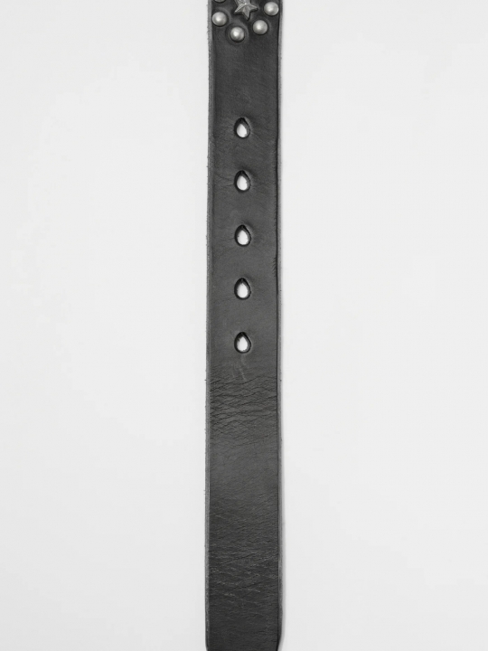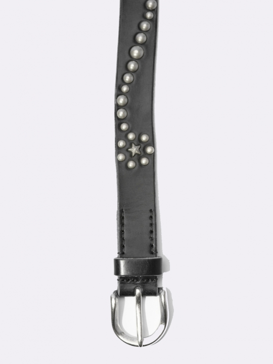 我們的星形墜落黑色馬韁革腰帶。這款腰帶由葡萄牙工匠手工裁剪,採用英國皮革製成,寬 3.5 厘米,飾有鉚釘星形墜落圖案、金屬針扣、皮革腰帶環和防撕裂防塵袋。 腰帶寬度為 3.5 厘米,從末端到中間的腰帶孔的長度為 70 厘米、80 厘米、90 厘米或 100 厘米(包括帶扣)。