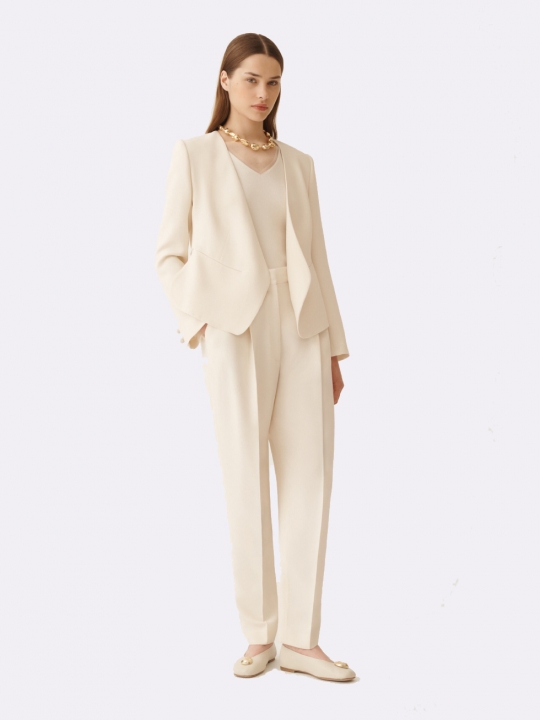 深藍色羊毛長褲