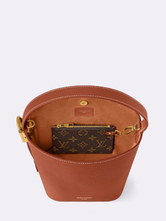 這款Low Key系列的All In BB展現小巧的水桶包造型,日夜場合皆宜。包款選用粒面小牛皮製作,配有仿舊效果的金色金屬件,締造細緻的復古氣息,而其他標誌性細節包括經典的LV掛鎖和可拆式的經典Monogram圖案口袋。包包可作多種方式攜帶,可輕易塑造不同風格,百搭多變。