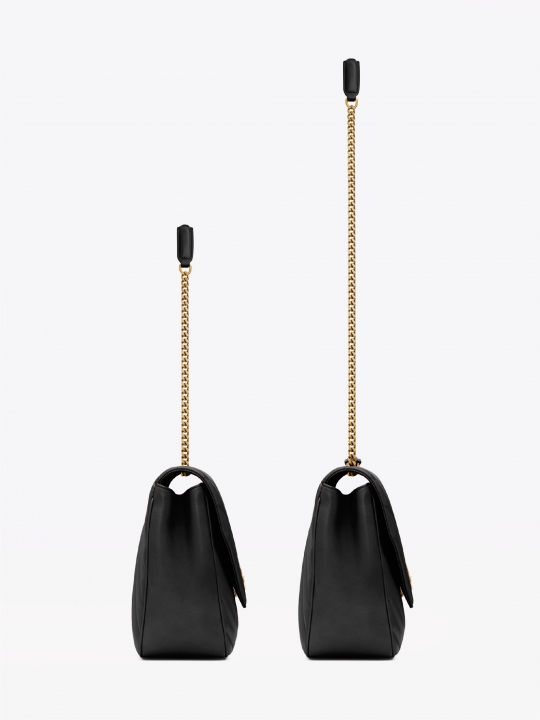菱格紋絎縫柔軟小羊皮信封包。 這款收納容量大的包款搭配可拆式皮革手拿袋和化妝鏡。 飾有滑動式鏈條肩帶,可肩揹或斜揹。