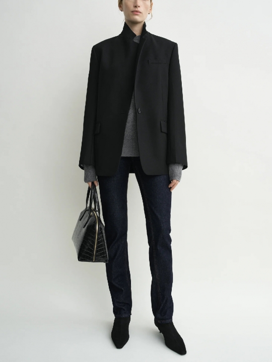 黑色無領外套