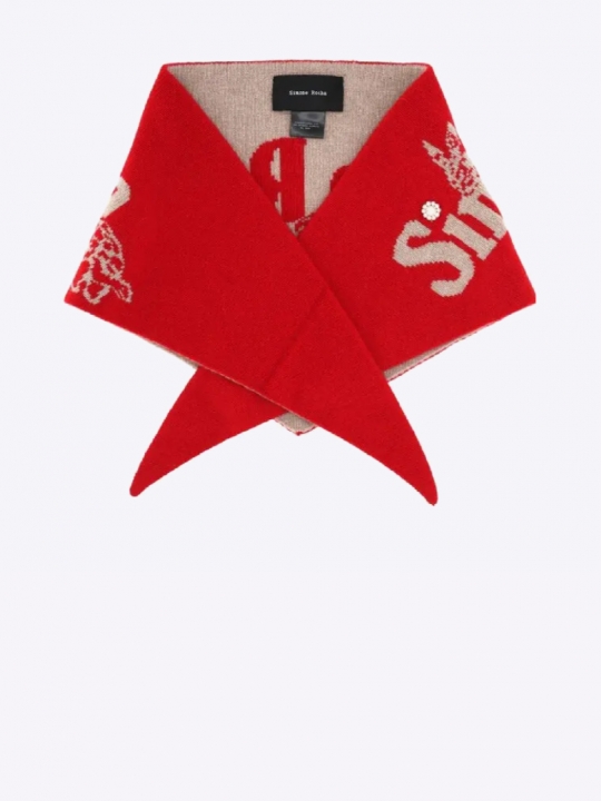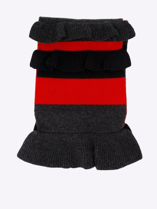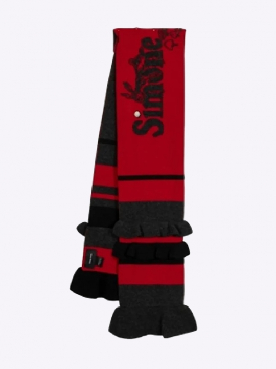 紅色/深灰色Daisy 荷葉邊條紋圍巾