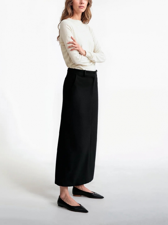 這條來自 TOTEME Garderob 系列的半身裙,散發著自信的氣質。它採用我們標誌性的西裝面料,打造出修長的直筒廓形,並飾以經典的剪裁細節,完美詮釋了極簡主義的優雅。
