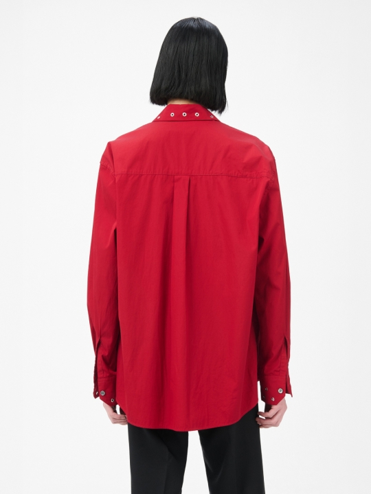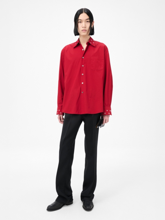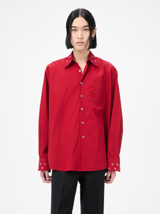 這款男款Above襯衫採用義大利棉府綢布料,版型略為寬鬆,並飾有獨特的孔眼細節、單一胸袋、珍珠母貝紐扣、斜角袖口和弧形下擺。