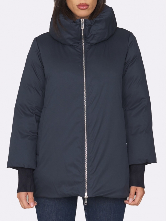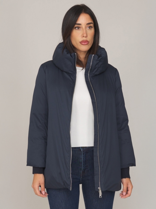 海軍藍連帽中長款羽絨衣