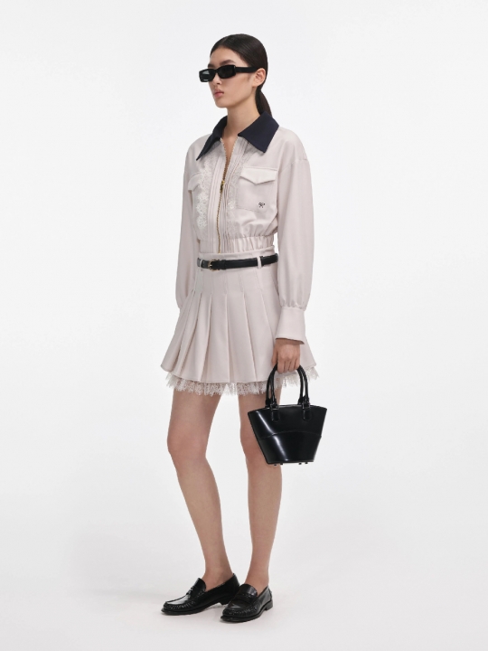 奶白色撞色領夾克